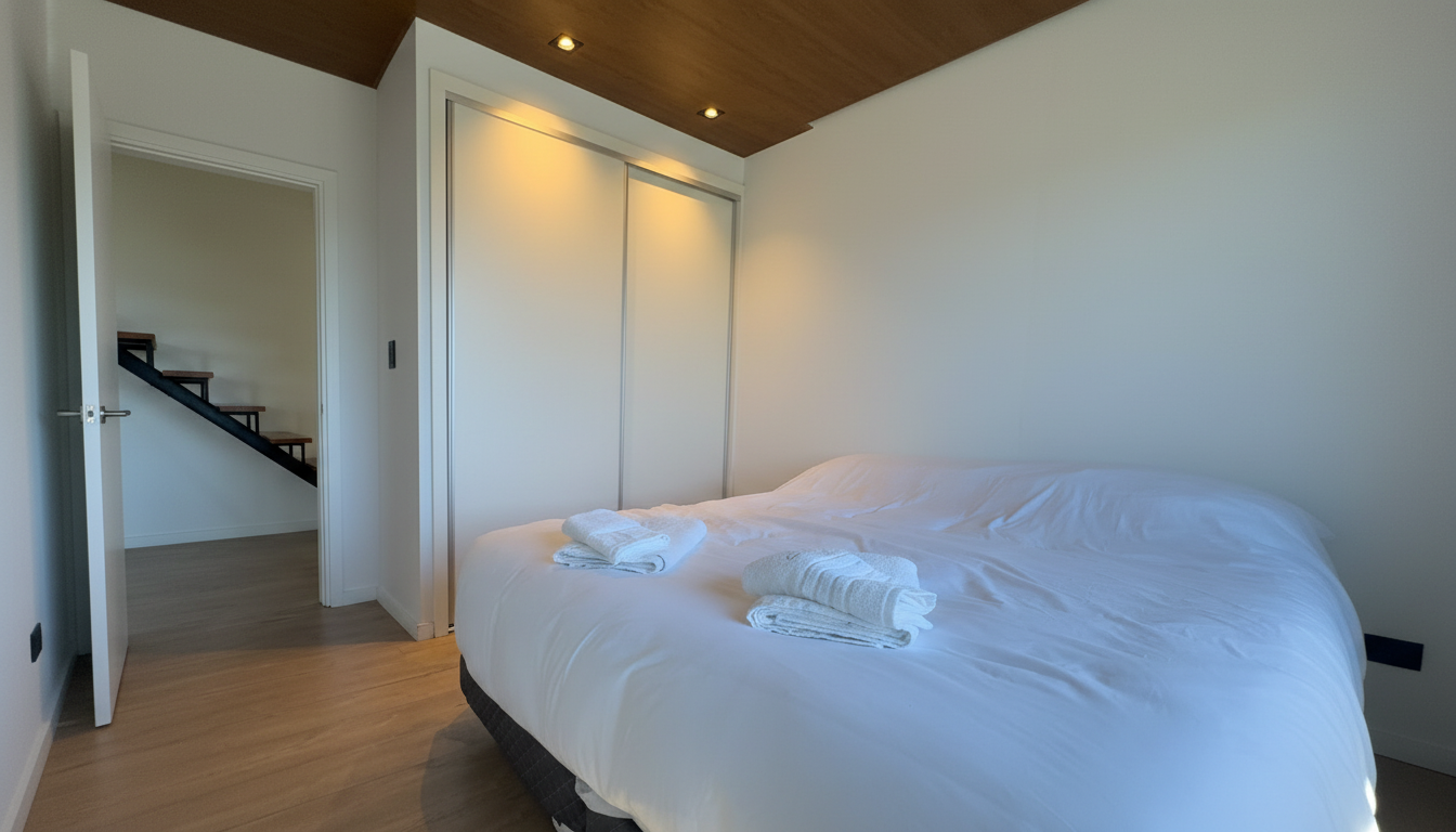 Amplitud y vistas abiertas en una distribución de dos niveles que separa áreas sociales y descanso.